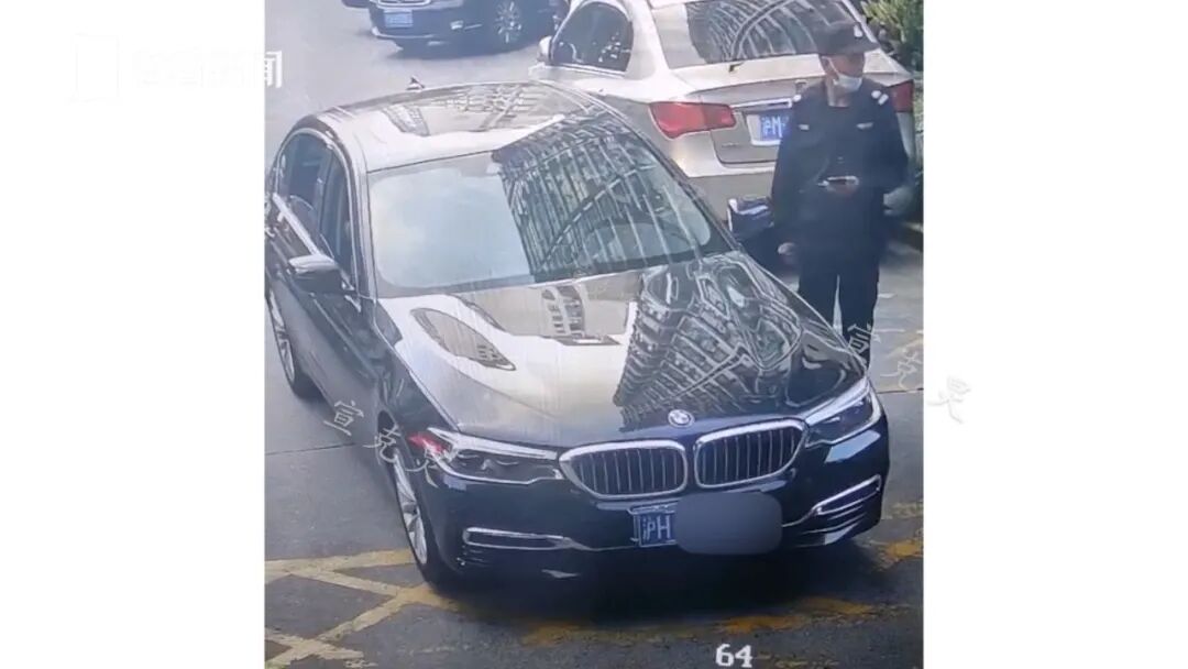 近日,这辆宝马车又一次停到了车位上,这立刻引起了物业和保安的警觉。该车隔天充完电后试图驶离小区,被及时拦停查看情况。