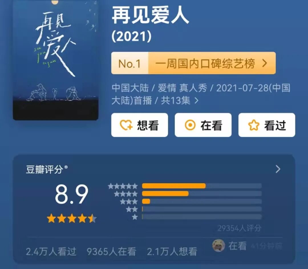 近期,《再见爱人》这档婚姻纪实观察真人秀在豆瓣获得了8.9的评分,也成为了不少网友们极力追捧的综艺之一,更是成为了广大网友婚姻生活中可参考的范本。