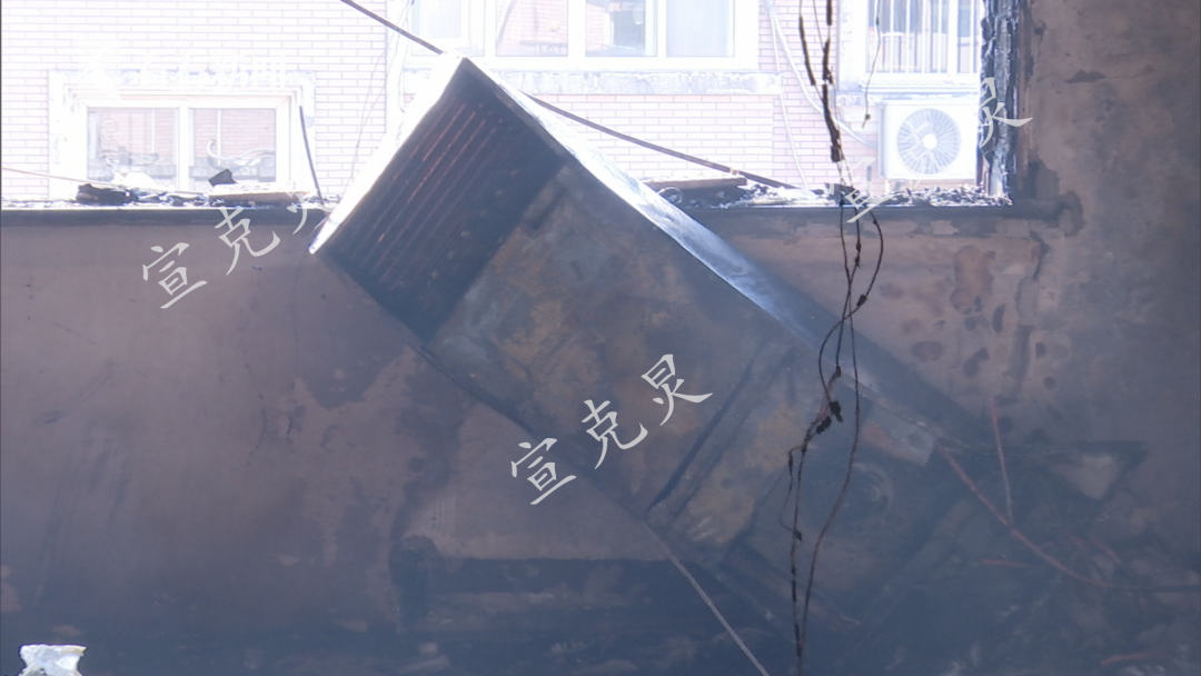 记者注意到,起火房屋的客厅受火情影响最重,被火熏烧至难以辨认的家具用品散落一地,封堵了通往复式阁楼的楼梯,一台几近报废的柜式空调斜靠在窗口处。![]()
