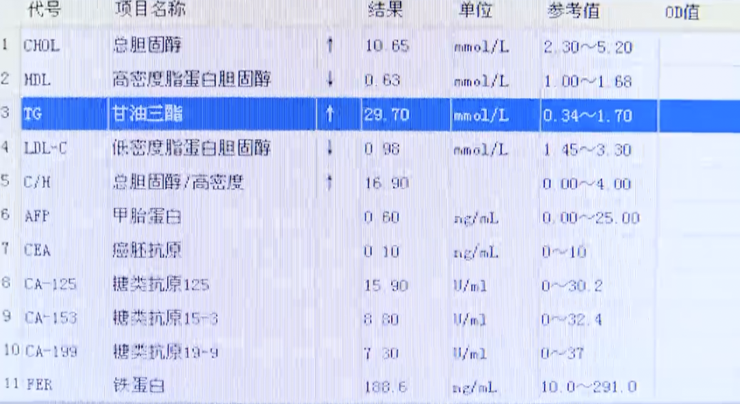 朱女士表示,因为知道吃坚果的好处,便每次上街都会特意去炒货店买上几斤,核桃、花生、瓜子每天都吃,一吃就停不下来。每天都要抓两大把吃,当饭吃。直到前两天,自己突然感到肚疼不适,且症状愈来愈严重,被家人紧急送往医院。“痛到受不了了,就被送到医院来了,整个肚子这里都痛。”经查,朱女士被诊断为急性胰腺炎。医生介绍,患者此次爆发急性胰腺炎就是由于长期食用坚果过量的结果。“正常这个甘油三酯是不超过1.7的,她已经是29.7了,整整超过十几倍。”经过禁食、抗炎补液等治疗后,朱女士的病情已有所好转,但仍需进一步住院观察。医生表示,坚果是营养浓度很高的食物,但过量食用就很容易导致油脂摄入过多,引起血脂波动,从而引起高脂血症。![561f17a60b72ebc8d4b2fb2ce605f8ab.png]()