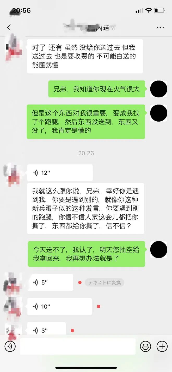 5月13日晚上10点多,微博自媒体号阮一,发长文,控诉美团快递员勒索。文章很长,总结一下就是,他要从上海普陀区,闪送一份,很总要的文件,去虹口区快递点,文件需要在8点前送达。结果美团快递员不仅超时,还擅自取消订单。在他公布的微信截图中显示,晚上8点半左右,快递员以送回文件为由,暗示他付钱,但不提具体金额。博主在文中控诉,直到发文时,快递员还在以撕掉文件作为威胁,自己投鼠忌器,只能守着手机,等快递员开价。5月14日,快递员对事件做出回应,当时博主提出“先送”后要求被拒绝。晚上7时17分,快递员联系博主表示电瓶车没电了,无法赶上快递点最晚揽货时间,之后博主要求快递员将文件送回。期间快递员提出“跑来跑去”“能给点运费”,得到博主同意。快递员表示,提到撕毁文件,并不是为了索要钱财,而是希望博主不要再催促,整个过程中,没有收到一分钱。晚上9时06分,快递员换电成功。9点40分,博主出小区拿回文件。9点53分,拿到文件返回小区。经社区监控显示,博主发微博前,美团快递员已经将文件送回给博主。![]()