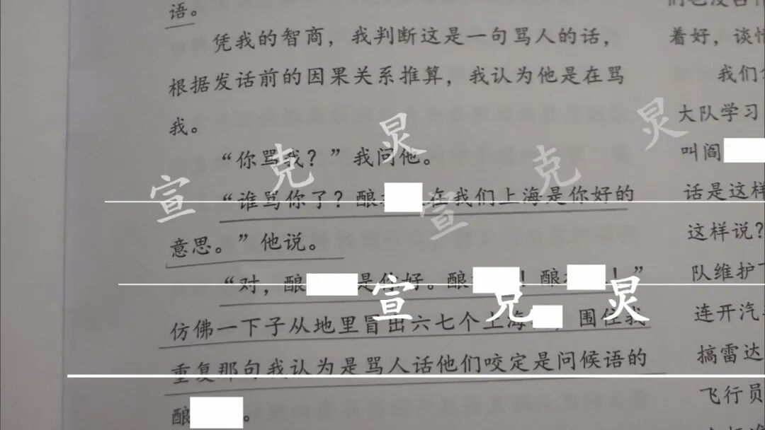 刘女士说,当时儿子就问我:“‘妈妈,某某作者还懂一点上海话啊?我觉得他还蛮厉害的’。我说‘哪里懂上海话?’他就翻给我看了,他问我‘这个什么意思’他就问我,我说这个肯定是不好的。我尴尬的,我很尴尬。我说我也不懂。这个肯定是不好的话,他说肯定是骂人的话。因为他已经是小升初了,他其实已经懂一点了,他知道是骂人的话,但是他说‘这个是什么意思’他就盯着我在问,我说我也不懂,这个话我也不好回答。