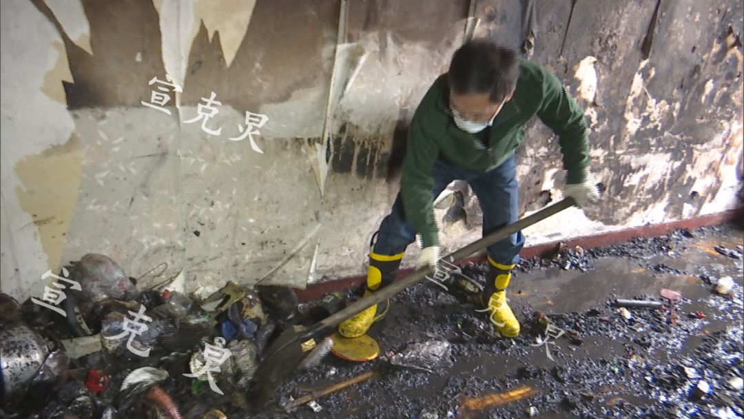 昨天,记者已经看到:楼下被清理出来的废品堆满了底楼地面。但是,没有想到的是:从昨天上午清理到今天(12月7日),失火房间内还有满坑满谷的废品,让人瞠目结舌。原本还以为是昨天的垃圾已经被清理走了,但是记者得知:昨天一整天清理出来的垃圾在晚上已经被清运走了,记者目前看到的这一地的垃圾是今天刚清理出来的。从今天(12月7日)早上开始,不断有工作人员从楼上清理出各种杂物,甚至有小区居民怀疑是否昨天刚刚将家中的堆物清理完,在短短一天内就又死灰复燃。居委会潘书记介绍说:这户居民家中堆放的废品实在太多,昨天清理出来的垃圾只是一小部分。小区居委会书记 潘牛山:“有居民反映昨天清理后,今天又死灰复燃有这情况吗?没有。是因为里面堆的实在太多,昨天清出来一部分是吗?对,昨天清理了大概四分之一,只清理了一小部分。”今天,小区物业工作人员、居委工作人员及志愿者、社工正在共同清理朝南房间内与阳台上的杂物,工作人员用铲子和扫帚将大量被烧焦的塑料瓶、易拉罐及其它生活用品,接力铲出室内;时不时从阳台上还能清理出灶台、洗衣机等大件物品;起火房屋的一家三口,也站在一旁一言不发的看着清理的过程。小区居委会书记 潘牛山:“从昨天到今天下午三点,我们清理他家的垃圾已经清理了三分之二, 还剩三分之一。”“我们现在从他的厨房间到南边的大房间,已经清理完毕。明天上午我们打算清理北房间。预计明天下午全部清理干净,接下来我们就是善后的处理工作,包括居民家中的财产损失,居民在外租借的宾馆、生活费等,我们进行协调。”在清理过程中,这户居民家40多岁的女儿一直对着墙角,保持同一个姿势。记者在现场看到,还有两间堆满杂物的房间尚未被清理,其中一间朝北的房间内,满屋的杂物将房门都给堵死,即使用力踹都无法踹开。而从门缝隙中可以看到,屋内整齐的堆放着各类金属罐头和纸板箱,而另一间未被清理的房间内则杂乱的堆放着许多塑料瓶、环保袋。小区居委会书记 潘牛山:“现在这户居民我们临时将他们安置在活动室,暂时住在那里。”据了解,从3年前开始,这户人家不知出于何种想法开始将大量废品锲而不舍地搬上六楼,而且只进不出,将物品满满的堆积在房间内与楼道中。小区居委会书记 潘牛山:“可能他生活方面有陋习,喜欢藏东西。这些情况持续多少时间了 ?大概3年左右。原来家中堆物我们没有发现,在外面我们发现了。这个陋习喜欢捡东西,而且捡东西只进不出。”严重的堆物行为给周围邻居带来了很大的困扰,并曾多次向有关部门进行反映此事。而居委书记表示,在过去的两年内,已经协同有关部门对堆物行为处置过五六次了,但由于居委仅有权对楼道等公共空间进行处置,而对居民家中的堆物行为无权管理,因而每次都会死灰复燃,用不了多久楼道内的的杂物就会"卷土重来"。小区居委会书记 潘牛山:“我们原来居民举报是在外面的堆物。楼道里的是吗?对,楼道内的。民警、城管和居民等都做了很多工作,来进行协调、处置,我们从去年到今年,到他家中处置了至少四五次。”“你们是处置楼道还是家中?处置楼道,和公共部位的堆物,家中堆物 我们没有权限处置这个事情。我们权利是在公共部位,我们有权清理。”据居委介绍,将采取相关措施防止类似的堆物事件再次发生,并定期上门检查,而这户人家目前对居委表示:将积极配合整改工作。居委则要求该户居民签保证书。小区居委会书记 潘牛山:“接下来我们要通过社区民警和居民制定有关法令文书,让他签保证书,我们也会定时上门检查,杜绝这个事情再次发生。居民态度如何?他积极配合我们。”记者随后了解到,街道将在后期建立巡查机制,对辖区内家中堆捡垃圾的居民进行摸排、劝阻, 消除存在的消防安全隐患,保障居民生活环境的干净整洁。