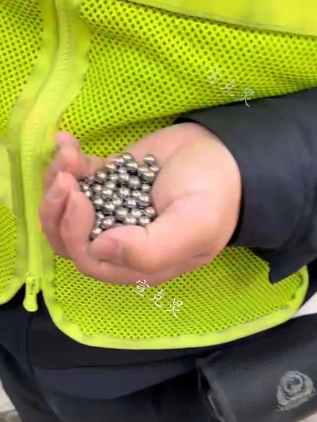 车主家属向记者出示了肇事的钢珠,钢珠大小约有半个指甲盖大小。而有保安人员总共收集到约20粒这样的小钢珠。