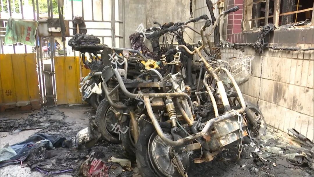 起火的位置位于一个集中停放电瓶车的车棚内,有数量被烧毁电瓶车的仍在此处,其中两辆损毁严重的被烧的只剩下框架。据村委会工作人员介绍,事发时电瓶车正在充电,停放的位置与充电设施都是符合规范的,起火的原因可能与电瓶车老化等有关,所幸并无人员伤亡。![]()