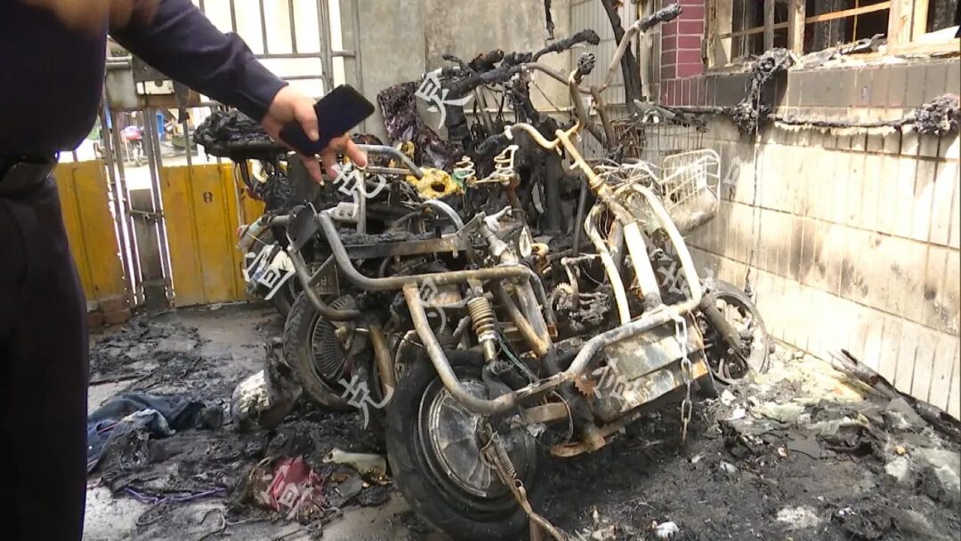 村委会工作人员王先生介绍说:“当时电瓶车在充电。当时晚上一直在充电。一共烧了10辆非机动车。我们一直在做教育提供,警示工作一直在做,千万不能把非机动车推到房屋里面充电。昨天因为是在户外充电的,不幸中的万幸就是没有人伤。这是拉的充电的线都还在,是符合相关管理规定的,电瓶车可能老化问题或者别的什么问题,引起了火灾。”![]()