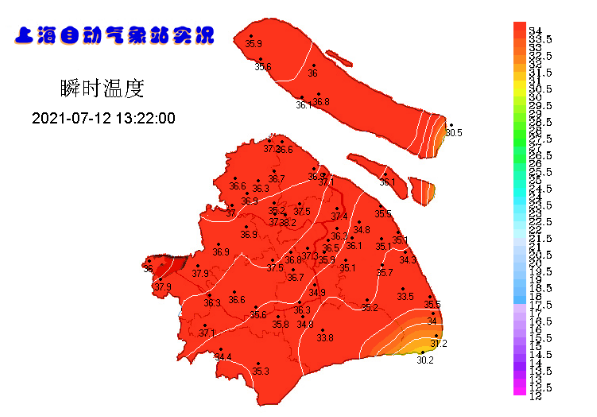 气象实况显示,截至今天13时,徐家汇站的气温已高达37.7℃,从中午12时开始,徐家汇站就一直稳坐全国气温榜头把交椅。不仅超过37℃的酷暑线,也再次刷新了今年最高气温纪录。这也成为继7月7日之后,上海今年出现的第二个酷暑日。![]()