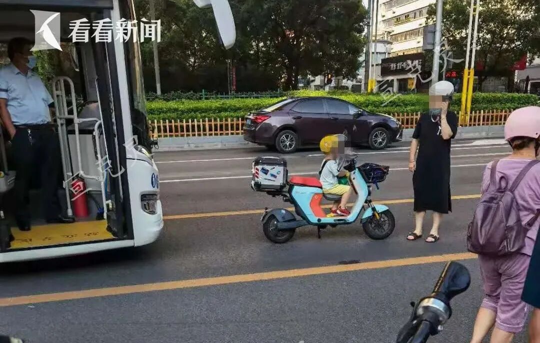 【看现场】沪骑车人自称受到惊吓,载娃逼停公交车!?