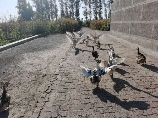 随着天蒙蒙亮,那些不安分的大公鸡,老母鸡开始闹腾起来。如果说在沪期间,醒来第一件事情,是洗漱完去早餐店买一杯热腾腾的豆浆和一个猪肉芹菜馅的包子,那么在家期间,醒来后的第一件事情,就成了撒开圈里的鸡鸭鹅,进行投喂。只有它们先“吃饱了,喝足了”,我们才会有空闲时间吃一顿安稳饭。