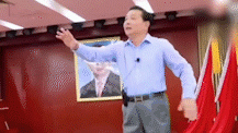 陈浩带着记者来到他展示“优美动作”的会议室。平常能容纳千人的教室,如今桌椅收起、地上有些灰尘,网络流传的视频里挂在正中间的个人照已经摘下。而两边的红色旗帜还很显眼。陈浩称,教室怎么布置自己不插手。