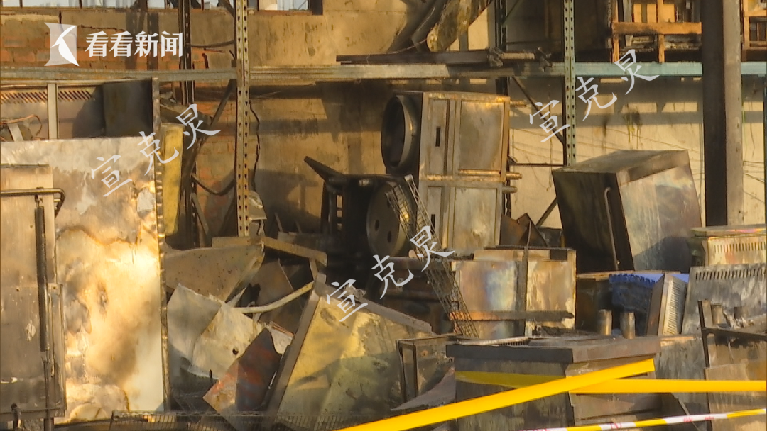 发生火灾的是位于嘉定嘉美路1688号上海酒总酒店设备有限公司的一个仓库,记者在现场看到:整个仓库顶棚塌陷,有铲车顶住塌陷的顶棚,仓库内的不少酒店用品被烧毁,其中包括塑料桌椅、燃气炉、加热柜等物品。![]()