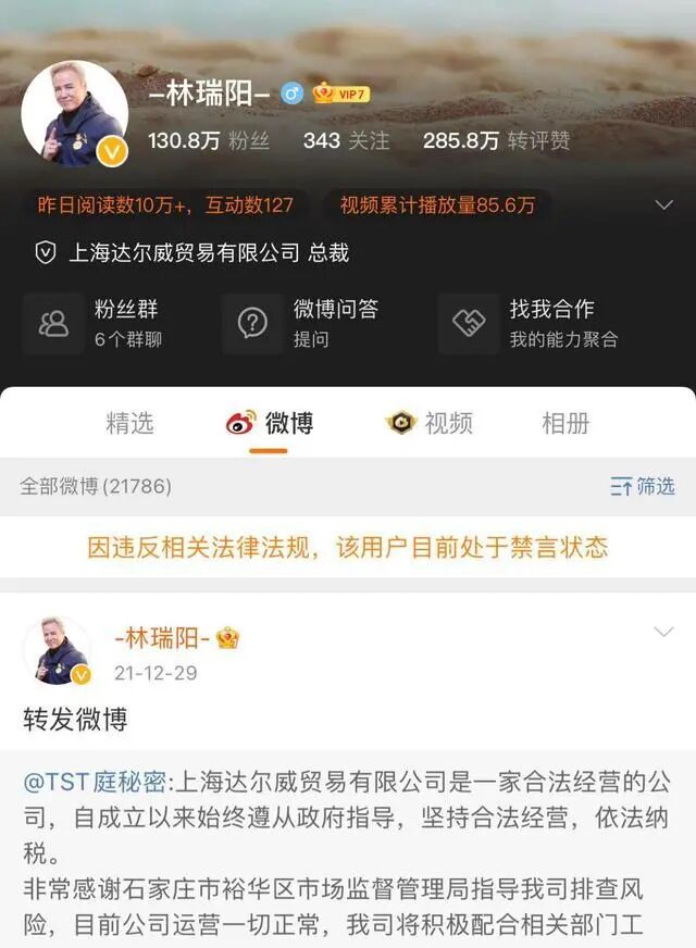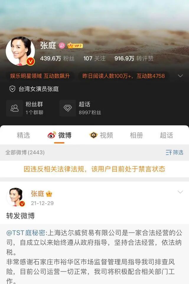 【后续】张庭抖音账号被暂封 夫妇俩微博账号已被禁言 此前两人公司涉传销被调查
