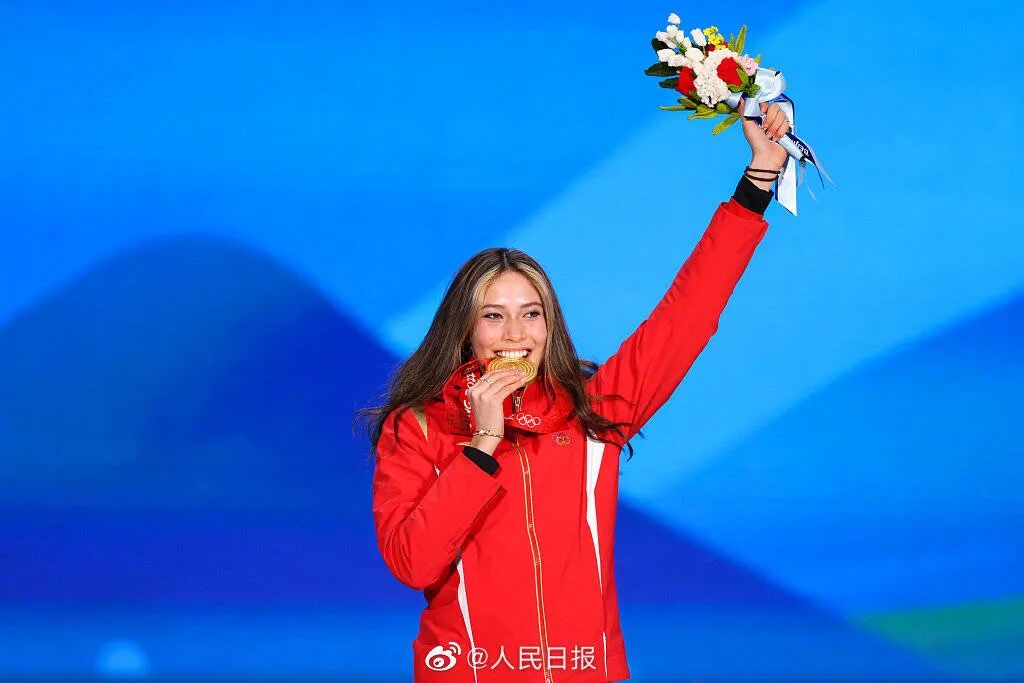 谷爱凌同时也大气地回应了美媒的质疑。