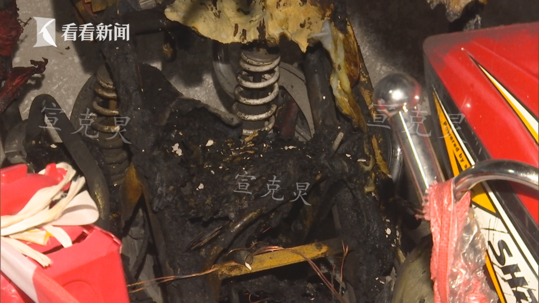 电瓶车自燃,夺命只需100秒!如果消防措施得当,能够大大减少危害和损失。昨天(2月22日)下午三时许,宝山区美丹路1033弄17号旁边的地下非机动车停车发生火灾。起火原因初步判定为:在充电过程中电瓶老化所致。此前,小区业委会、物业和居委等各方努力下安装了喷淋、充电桩,使得火情很快被控制。记者今天(2月23日)来到了事发小区。走入地下非机动车停车库,地面有许多的地面积水。事发的区域被几个路障围了起来,空气里有淡淡的刺激性异味,可以看到发生自燃的助动车停在车位,车尾紧贴充电桩。该车位位于最右侧的喷淋龙头的正下方。火灾过后,助动车的车尾处损坏严重,一片焦黑,只剩车架,而车头部分损坏地并不严重。此次火灾事故的损失并不严重,大火只殃及到了事发车辆左侧相邻车位的电瓶车的右侧车柄。![]()