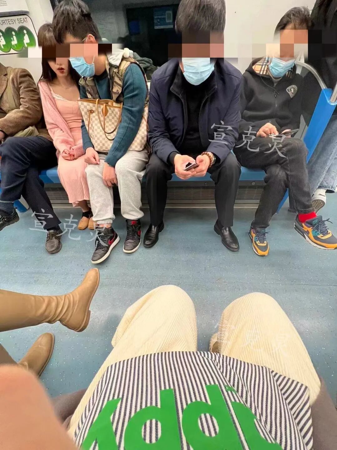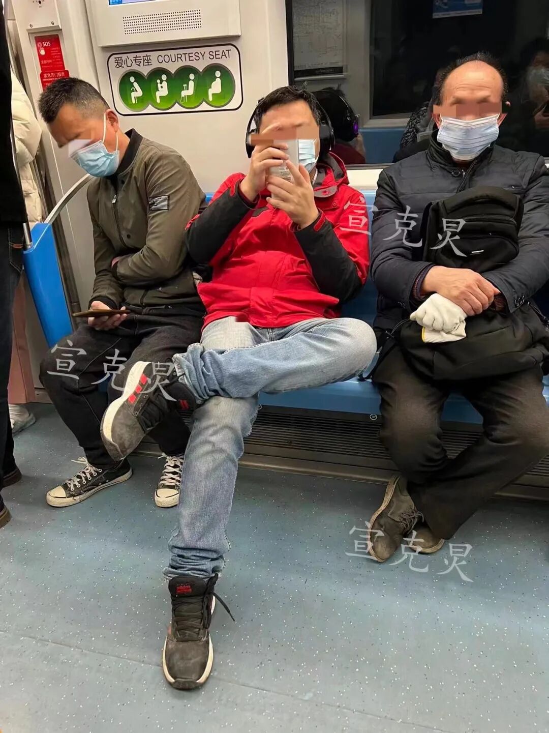 除了未规范佩戴口罩的行为,还有一些乘客搭乘地铁的时候坐姿十分慵懒,似乎把座位当作了床位、一副巴不得立马躺平的样子。地铁8号线上,一男子伸直了右腿、几乎要探到过道的中线,左腿翘又翘在右腿上。这“霸气侧漏”的坐姿想必给其他乘客带来了很大的困扰,从网友发来的图片可以看到,坐在该男子右侧的一名乘客半侧过身子、眉头微蹙。![]()