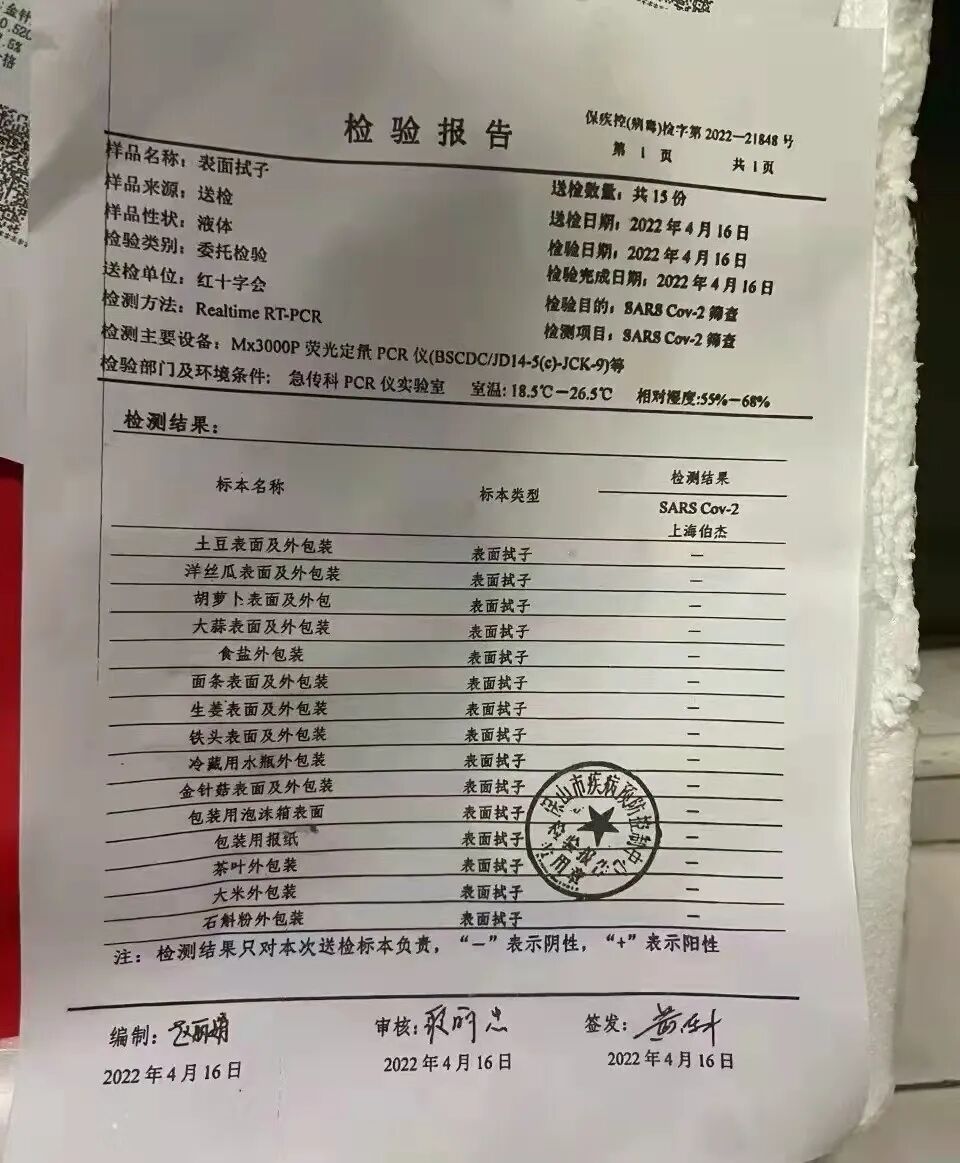 4月22日,闵行区新冠肺炎疫情防控工作领导小组办公室发布公告称,经核查,4月20日,颛桥镇收到来自云南保山的爱心捐赠物资共计2000余份,未经开箱,当日即下发至万顺水原墅居委所辖的三个小区居民手中。随后,有居民在业主群中反映,箱内物资有所差异,并有居民晒出物资照片及箱底附有的检测报告清单,质疑箱内实物与清单不符。