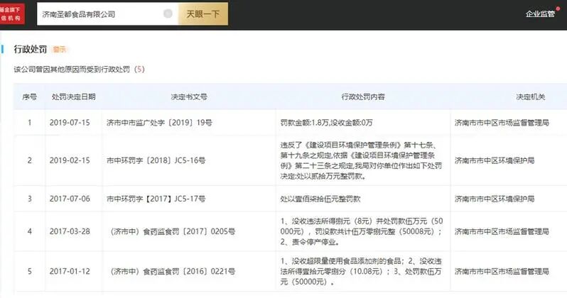 同时,对于涉嫌发布虚假广告的问题,已发函至委托单位所在地市场监管部门作进一步调查。产品质量把关不严、指标不合格,疑似致使消费者腹泻,“金帝来”金典三文治的生产单位,究竟是怎样的一家企业?记者通过国家企业信用信息公示系统查询“金帝来”金典三文治的生产单位济南圣都食品有限公司发现,该公司成立于1999年9月13日,注册资本3600万元,登记住所位于济南市市中区西东435号,主要经营食品生产销售。天眼查数据显示,济南圣都食品有限公司是“济南地区最大的专业低温肉食品生产厂家”,主要生产宝肚、烤肠、火腿、卷肘、烤肉、鸭胸、鸭卷、酱卤制品等系列低温肉制品。该企业存在多项失信记录:2017年至2020年,济南圣都食品有限公司曾因各种原因被济南市场监管、环境保护等部门作出5次行政处罚决定。国家企业信用信息公示系统显示,2021年4月22日,济南市市中区市场监管局对济南圣都食品有限公司作出罚款6.9万元的行政处罚决定。原因是在市场监管部门的食品安全监督抽检中,济南圣都食品有限公司2020年12月23日生产、2021年1月11日济南槐荫春强副食店在售的一批次五香猪皮脱氢乙酸及其钠盐(以脱氢乙酸计)项目经检测不合格。此后,经过复检,相关产品依旧不合格。脱氢乙酸及其钠盐广泛用作食品防腐剂,对霉菌具有较强的抑制作用,但研究指出,长期大量食用脱氢乙酸及其钠盐含量超标的产品,可能对人体健康产生一定影响。除了食品安全问题,普陀区长寿路街道发放的“金帝来”金典三文治,还存在广告宣传问题。此前有长寿路街道的居民反映,济南圣都食品有限公司成立于1999年,济南金帝来食品有限公司成立于2021年,两家企业成立均不足30年,由此质疑“金帝来·30年畅销品牌”的广告涉嫌虚假。记者通过国家知识产权局商标局网站查询“金帝来”金典三文治包装上的“JINDILAI金帝来”图文标识信息,结果显示济南圣都食品有限公司2020年9月27日申请的相关商标(申请号:50103183,国际分类:29)状态为“申请被驳回、不予受理等,该商标已失效”。5月7日,上海市市场监管局公布信息,要在全市范围内开展“守安全,稳价格”专项行动。市场监管部门表示,将继续加强与商务部门、街镇、发放组织者的对接机制,做好保供食品供应商经营资质查验。对没有经营资质、证照不符、严重违法失信的,予以“一票否决”。同时,市场监管部门严格督促食品生产经营企业按照要求做好食品采购、运输、贮存、分发等全程管控和记录,确保所有食品可以追溯;督促发放组织者和食品供应商确保退换货有足够备份和预案。食品安全标准是国家强制执行的标准,应当严格落实食品安全企业主体责任,禁止经营不符合法律、法规或者食品安全标准的食品,做好食品采购、运输、贮存、分发等全程管控和记录,提供优质安全的食品,让市民“领得放心,吃得安心”。