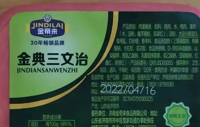 5月8日下午,上海市市场监督管理局发布通报称,经抽样送检,部分批次该产品,菌落总数、大肠菌群不符合要求。普陀区市场监管局接居民投诉,反映街道发放的保供物资“金帝来”金典三文治存在食用后腹泻和“金帝来·30年畅销品牌”的广告宣传问题。据查,该批“金帝来”金典三文治供应商为上海蜂耘网络科技有限公司,标称委托单位为济南金帝来食品有限公司,受委托生产单位为济南圣都食品有限公司。执法人员对上述产品涉及的三个批次(生产日期:2022年4月14日、2022年4月16日、2022年4月17日)进行抽样送检。根据检验报告显示:批次为2022年4月14日的“金帝来”金典三文治菌落总数、大肠菌群不符合GB 2726-2016《食品安全国家标准熟肉制品》的要求,检验结论为不合格。