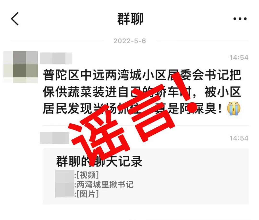 近日,有网友称普陀区中远两湾城小区居委会书记把保供蔬菜装进自己的轿车时被小区居民发现当场抓住。对此,中远两湾城小区所属宜川路街道通过官方公众号发文称:经核查,该消息不属实该视频内容并非发生在中远两湾城。针对此事件,中远两湾城居民区已向公安机关正式报案,将对造谣者依法追究法律责任。