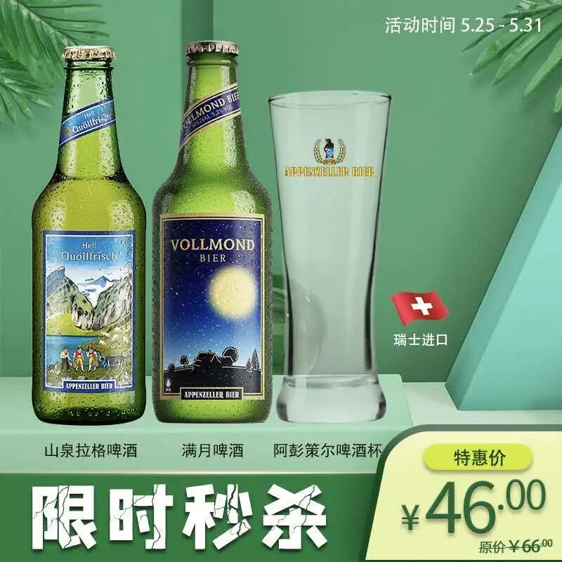 2)阿彭策尔山泉啤酒和满月啤酒,限时秒杀价46,