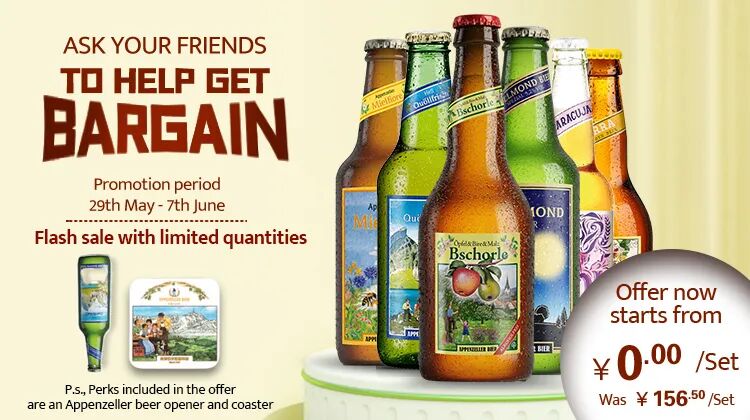 2)Appenzeller Quöllfrisch & Vollmond (Valid dates: 25/05-31/05), starting from ¥46/set
