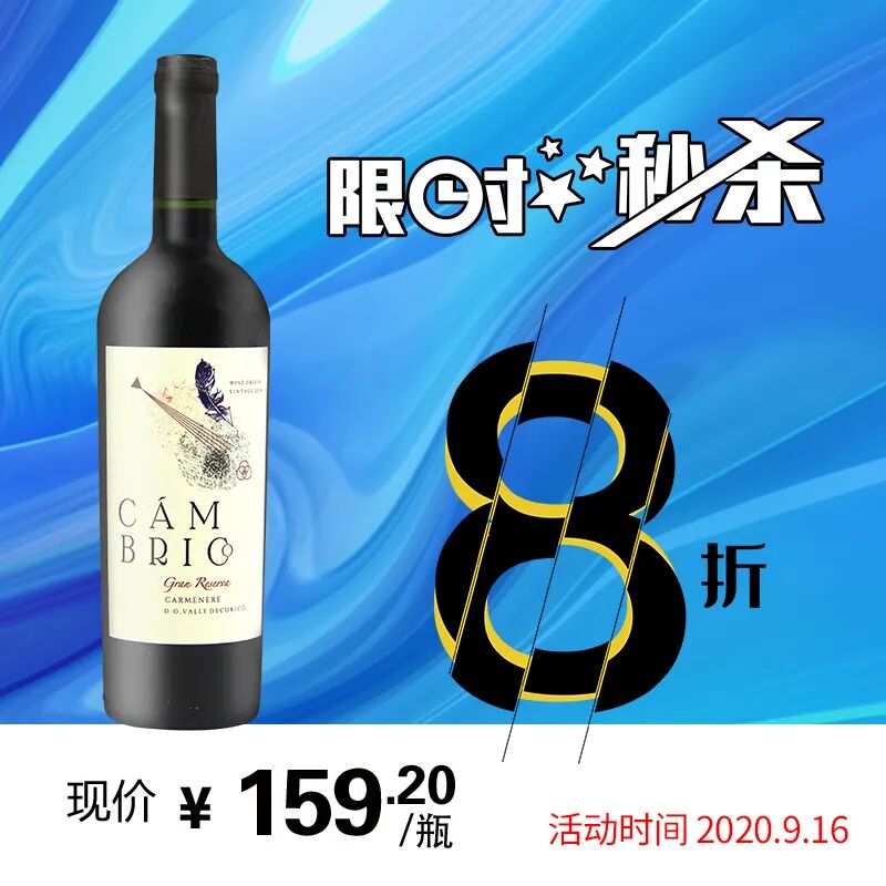 仅限今天一天(9月16日),寒武纪特级珍藏卡门干红葡萄酒 8折优惠,不限购。