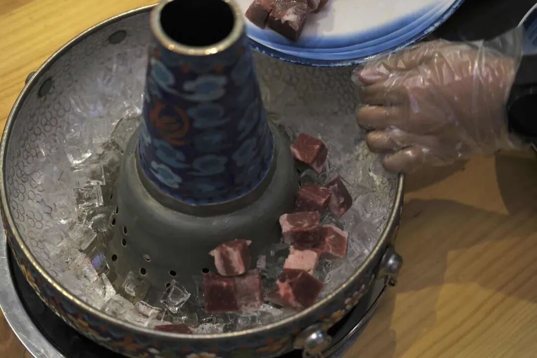 关键他们家还有自己秘制的蘸酱,据说是买来的独门配方,确实很香,老板一边给上菜,一边还全程讲解了冰煮羊的故事,一顿200块的羊肉火锅,好吃还很有仪式感,感觉超赚。