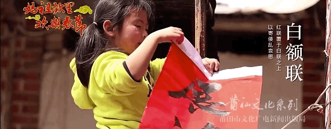 不同于我们使用的大红色春联,莆田人贴的是白额对联,红纸上面有一截白纸头。
