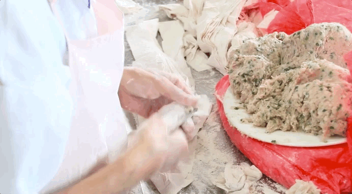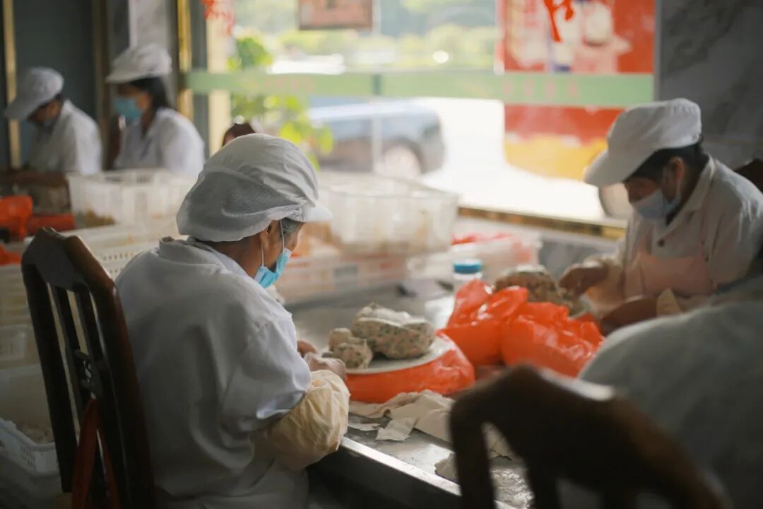 在店里的透明操作间,还能“欣赏到”师傅们娴熟的包肉燕技能!
