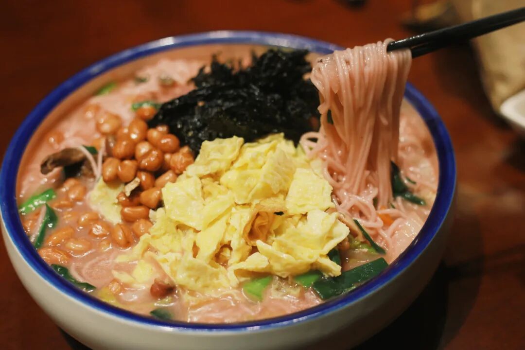 肉片滑嫩、芡粉薄、汤头鲜美,还有必不可少的豆芽、韭菜、香菜。