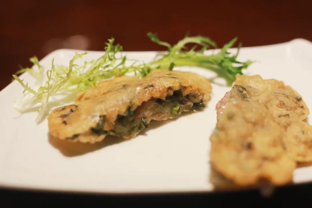 其实“炝”是一种莆田特色的做法,具体是用地瓜粉包裹不同的食材来白灼,最关键的是通过对火候、时间的严格把控,达到滑溜溜的口感。