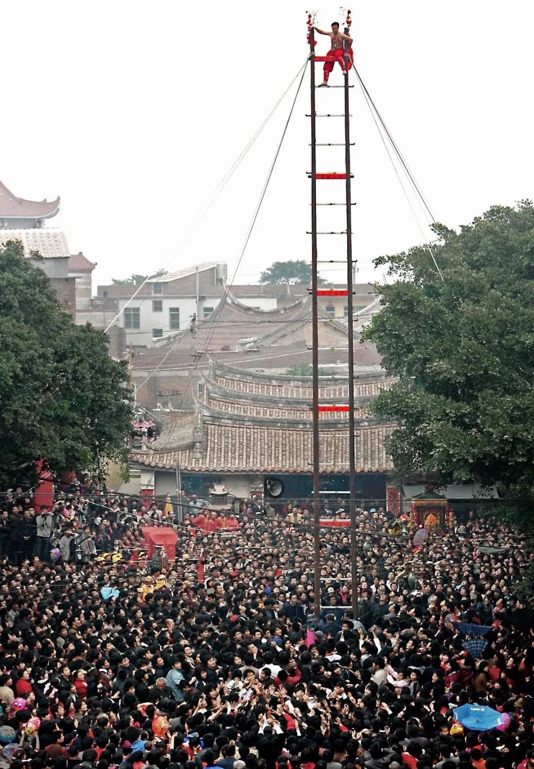 爬刀梯撒铜钱散平安,是📍莆禧古城元宵活动的重头戏。