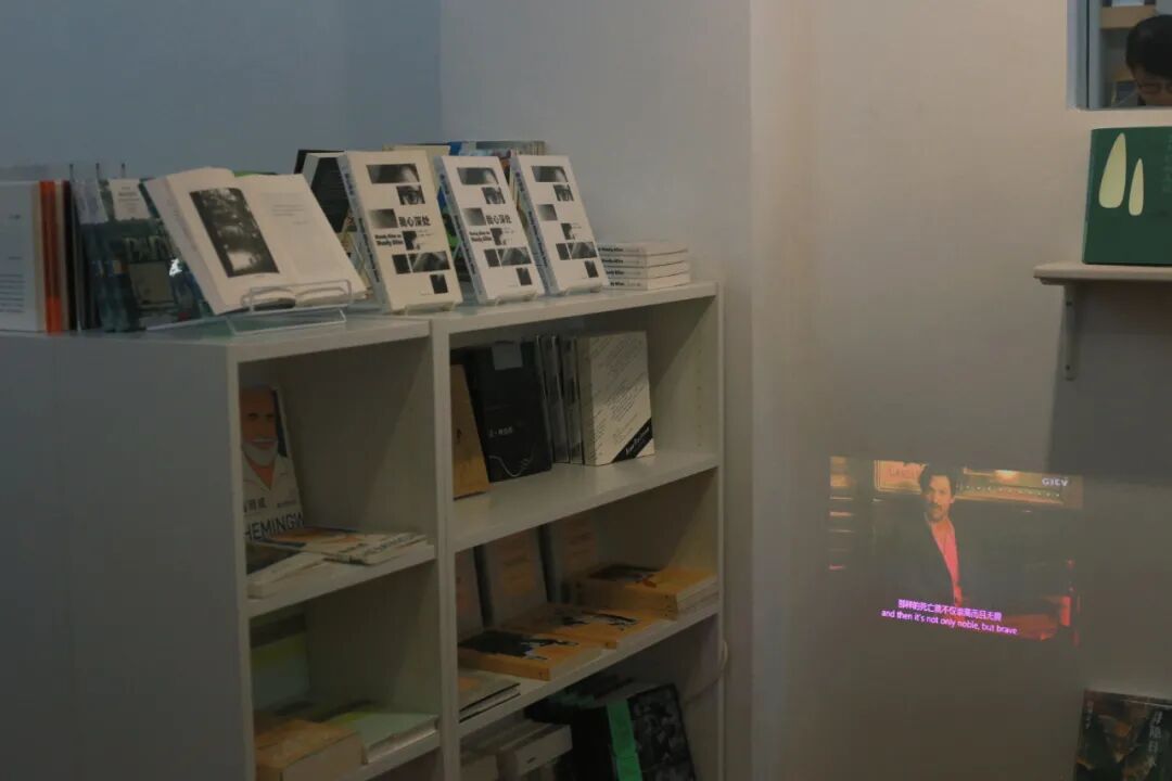 书籍选品偏向文学类,不定期陈列主题式的图书,有舒适的小座位可以悠闲地看书。极简的动向设计、随时无声播放中的电影,给这个空间增添了几分现代又非现代的神秘氛围。