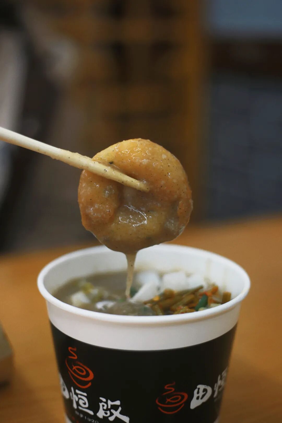 想感受武汉热热闹闹的过早氛围,想毫不费力的一次吃到各种武汉小吃,来这家准没错。坐落在胜利街的三镇民生甜食馆总店,从1957年开始就是当地人的大食堂,到现在还需要先兑换筹码,再到窗口购买所需要的点心,是国营商店传承下来的营业模式,有种穿越一般的年代感和仪式感。阿球是吃了其他小吃才来的这里,只尝试了桂花糊米酒和蛋酒。桂花糊米酒,是汤圆粉加糯米酒做的,黑色的是桂花糖,里面还有一整条软糯的糯米粉条,酒香伴着米香,回味无穷。店里的气氛格外热闹,随便问上几个当地人,都能给你来些不同的推荐。