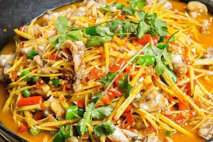 二荆条+红椒+剁椒+嫩仔姜+小克猫儿+一顿爆炒=仔姜鲜椒小克猫儿,一大盘子汤汁浓郁,色泽鲜艳的小克猫儿硬是看到就流口水。