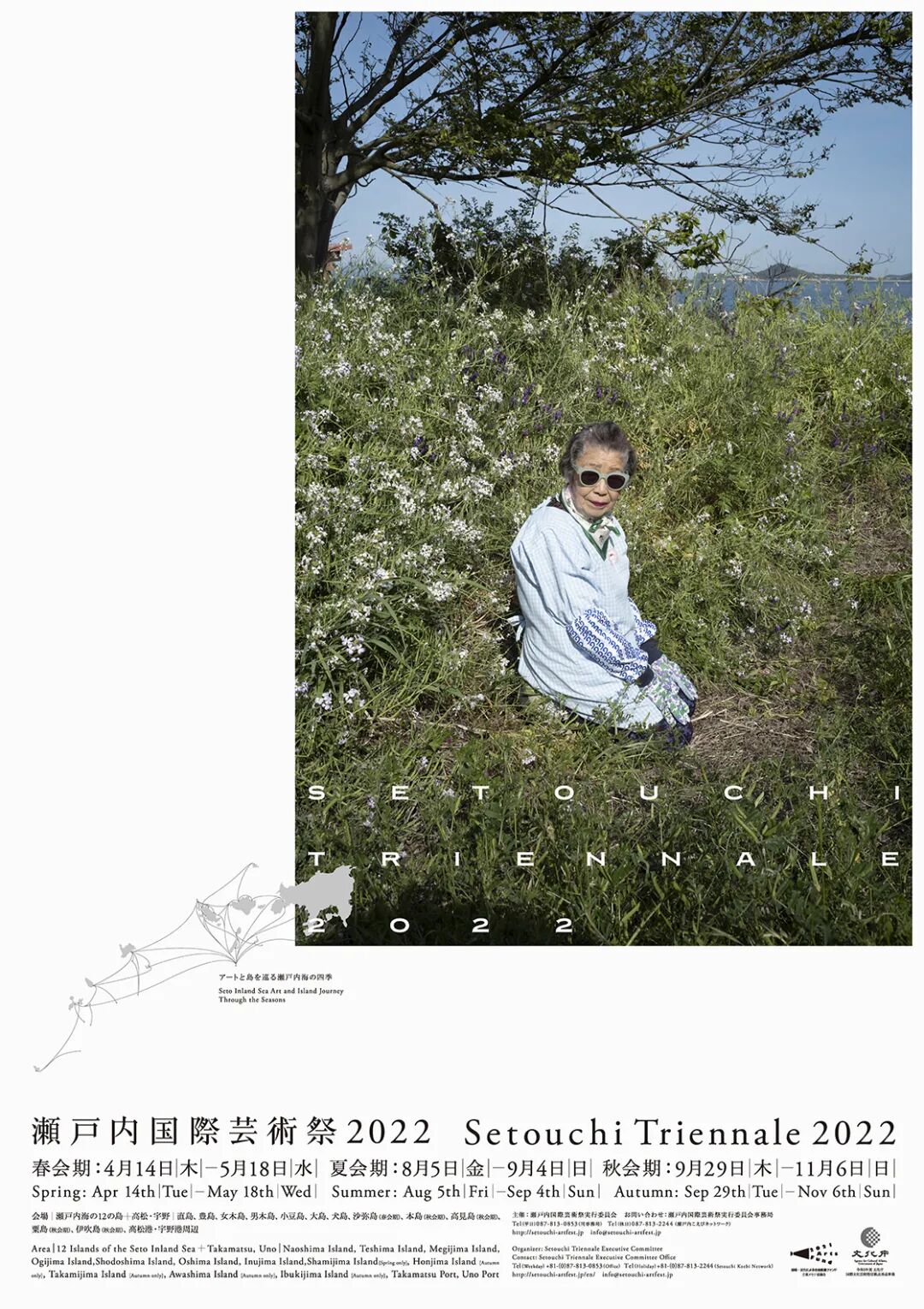 2022濑户内国际艺术节海报,以“海洋复兴”为主题所以下一次的艺术节,不妨试试包艇跳岛,无需绕路,点对点连接,直达各个岛屿。一边感受濑户内海的艺术氛围,一边欣赏壮阔绝美的海景,以“寻岛”的方式重新认识濑户内海。同时可以选择入住位于香川县高松市城东町的穴吹邸,特别美,是一座带有天守阁及日式庭院的和风建筑。曾经是私家高级府邸,1日只能接待1组贵宾入住,除了美,体验也很特别。