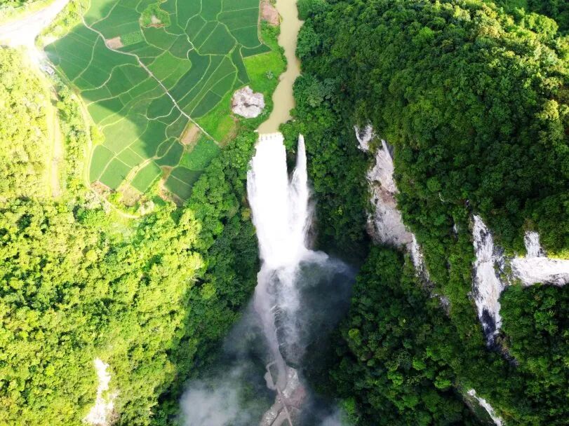 绿意弥漫的群山中散布着众多野生瀑布,比黄果树更野生,时而还能看到彩虹倾泻……