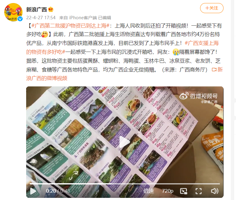 自从广西第二批援沪物资抵达上海后,“广西支援上海的物资有多好吃”、“现在才知道的广西特产”……接连被网友顶上热搜。
