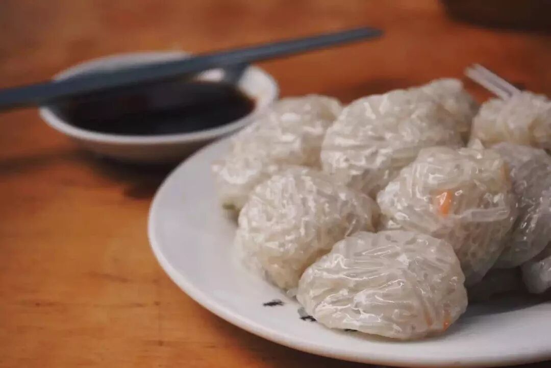 @阿漫RFJM现包现做,皮是晶莹透明的,里面包的则是粉丝和肉末,而非糯米。蒸熟出锅时刷上一层猪油提香。