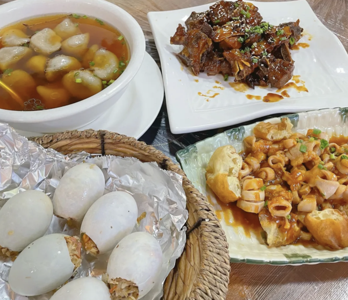 五彩糯米蛋,5个起点。往蛋壳里塞糯米、咸蛋黄、猪肉、干贝等配菜,几种味道混合,层次感满分。爆小肠更是出乎意料,配香酥油条,爆炒后爽脆不难嚼,口口爆脆。非油炸糖醋排骨也可以尝试。精选新鲜排骨,肉质格外细腻。料汁更是恰到好处,不会甜到发齁。![]()