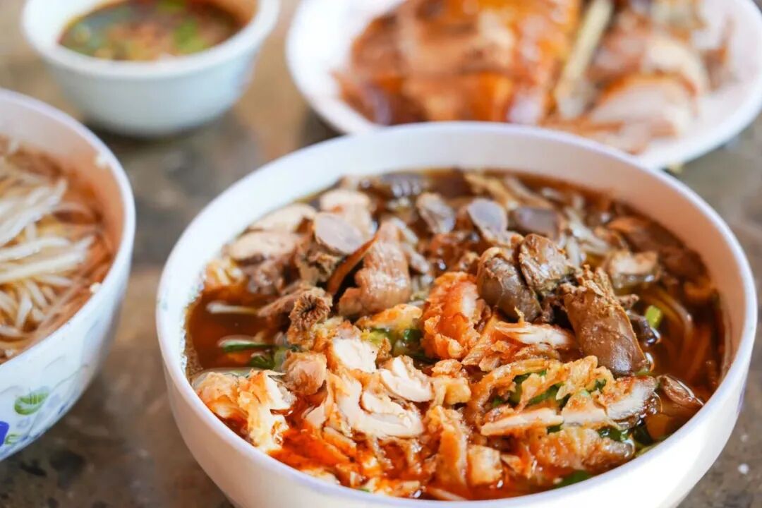 其实昆明街头,大大小小的卤鸡米线店到处都有。但一口正宗的味道,还得回到弥勒来吃。卤制后的土鸡鸡皮金黄,鸡肉入口不肥腻。蘸水要有青韭、白葱、玉蒜、黄姜,再配上劲道爽滑的米线,让人回味无穷。![]()