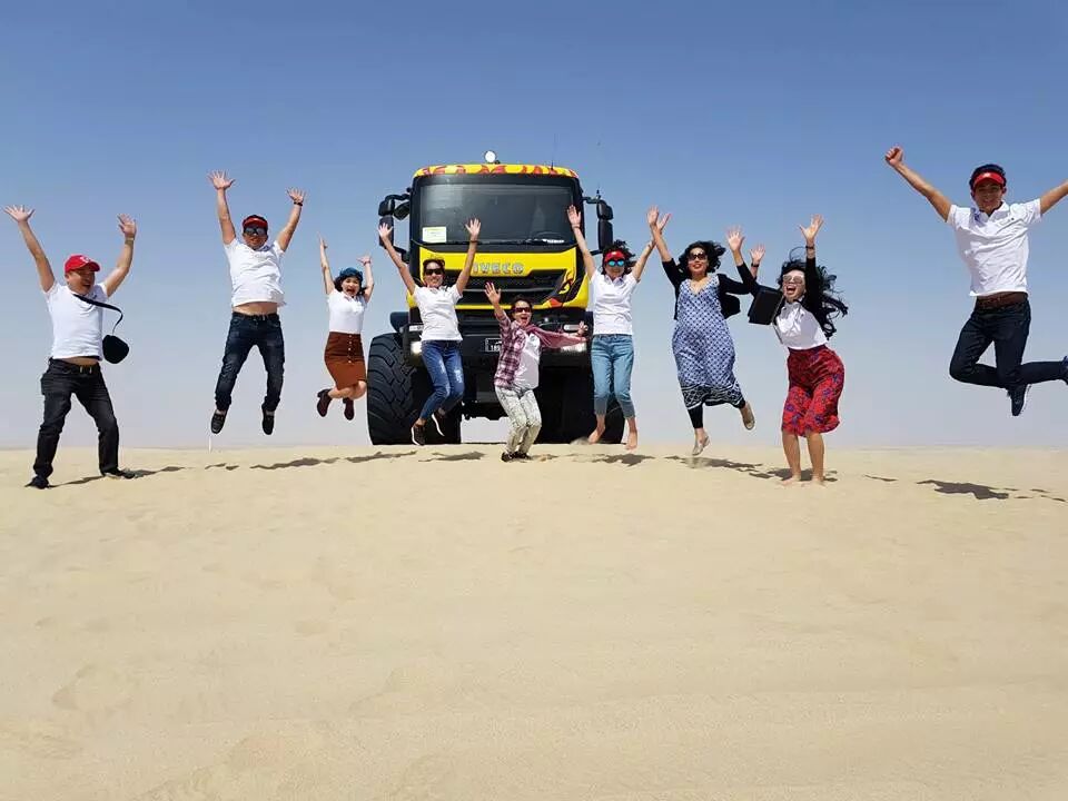 如果你人数不多,坐小车去冲沙不划算,也可以体验这种巴士。和各个国家的人一起去沙漠玩,也是难得的经历呢。