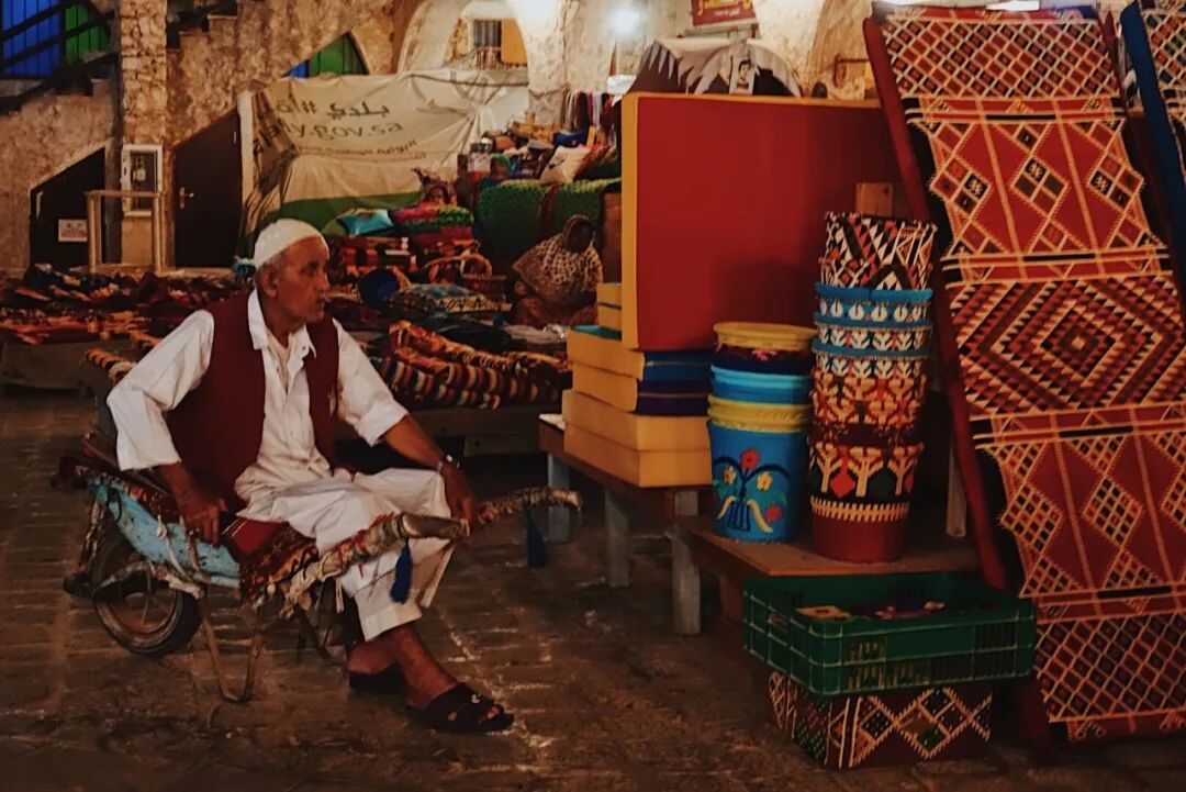 这里所有建筑都是复古的,建筑的外墙都是粗粝的石头,顶部用绳子将椰枣树叶扎成片铺开到竹子做的梁上。进到小胡同里,瞬间感觉像在老的中东电影中,空气里弥漫的是古老的檀香气味,如果没有擦肩而过的行人,这里就是一千零一夜。我们穿梭在魔幻的白袍世界中,看着他们悠闲地来一壶阿拉伯水烟,自己才是异类。