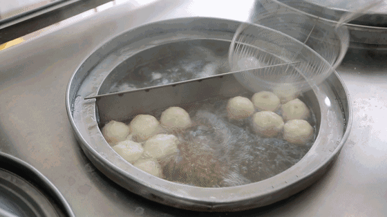 它和普通的鱼丸不同,利用靠海的地理优势将现捕捞的鳗鱼等新鲜海鱼做原料,比起淡水鱼更浓郁劲道,所以做出来的鱼丸个个弹力十足包含肉汁,你一定要试试~
