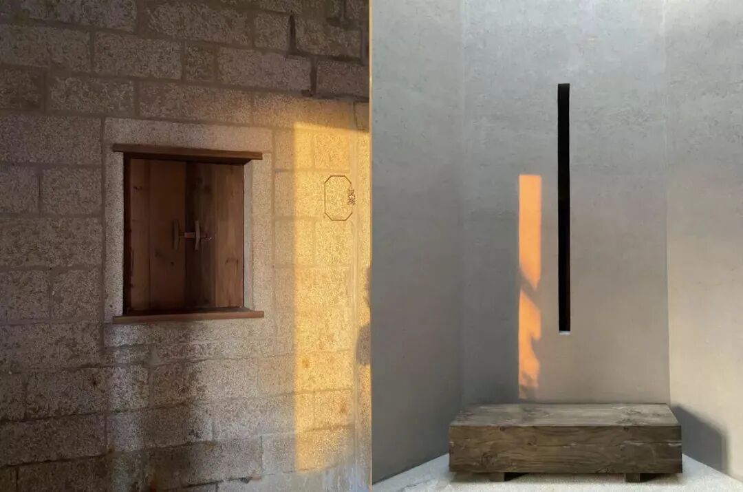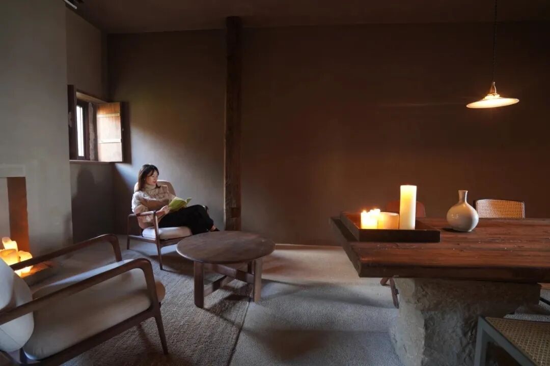 陶艺、木头,一些前卫的酒店设施,一半是深邃的古朴,一半是现代,光影交错,好像在穿越时空。