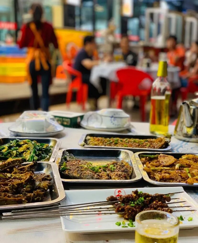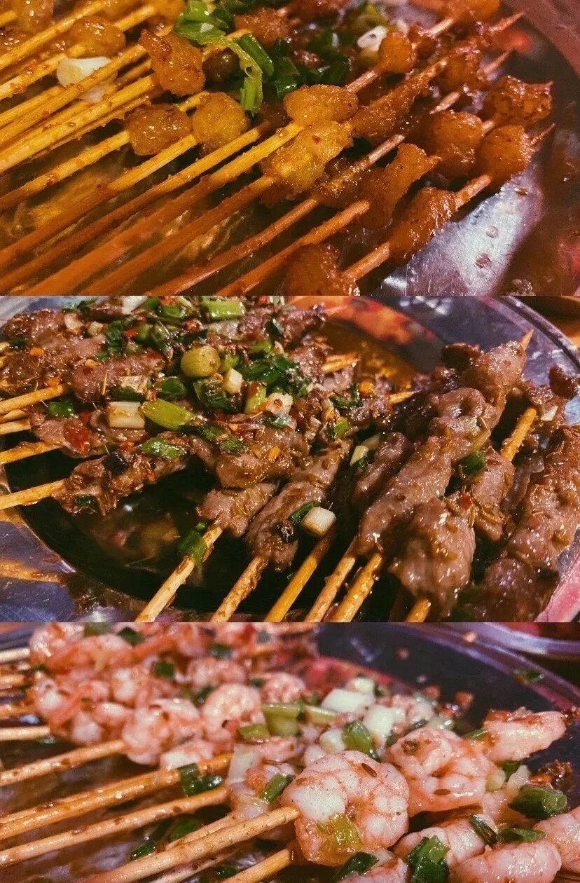 每到晚上,满街的霓虹灯亮起,每一家烧烤店都有自己的独特秘方吸引着四方食客,这种热忱的宵夜文化,也让这座小城的夜晚,格外有人间味。不敢讲纸厂老李烧烤在岳阳人心中是数一数二的好店,但它的口碑和地位绝对在岳阳人心中是印象最深刻的老店。这里一直都好红火,以前上夜班的职工到了晚上就要出来觅食,好填饱肚子继续工作。慢慢的,这里就有了烧烤摊。人气最旺的,就是老李烧烤。羊肉串、牛肉串,鲜嫩多汁且嚼劲十足;肉筋、皮筋、鸡杂,是非常起口味的烤串;而管筋、板筋则越嚼越香,很适合喝酒聚餐。还有煎得外焦里嫩的铁板土鲫鱼,也是李叔店里的招牌。22年的烧烤摊,李叔烧烤的味道是巴陵人的浓浓回忆。也许,对于岳阳人而言,无忧无虑的追食时光,才是深夜幸福感的来源。阿球觉得,岳阳烧烤的成名有一半的功劳要给这些老城区的老厂子。比如,洞氮胖哥烧烤,就是因为化肥厂这群上夜班的职工口口相传,而打出了自己的名气。一到夜晚,空气里漂浮的孜然味和辣椒香,让在附近化肥厂上班的职工,在下班后和同事坐在树荫下吹着瓶子,呷着烧烤,度过了一个又一个美好的夏天。馅料新鲜丰富,剁好的肉泥里还额外添加了粉丝、香菇和包菜,在油锅里一滚,待到表皮焦黄起泡就捞起来。趁热咬开,里面的馅还流着汤汁,鲜香和焦脆结合,也难怪好多当地人都专门过来打包这炸饺子!来上一盆香辣的大个龙虾,带着手套的手基本上断绝了手机上的世界。将心思和快乐全部寄托在现在这群正一起吃着龙虾的人身上,快乐越来越浓,感情越来越深,龙虾也就越来越好吃了。如果要论出名,当地最出名的烧烤店,一定是定三毛,这可是岳阳的文化输出之一!到岳阳来了,肯定得去炮台山的总店。他们家的招牌,是铁板韭菜。阿球打包票,在外地,你几乎吃不到这样的铁板韭菜。薄薄的铁板,升温很快。在上面先放点油,铺上韭菜炕一下,再磕两个新鲜鸡蛋在韭菜上。听上去好像很普通,但韭菜鸡蛋的组合,和铁板一起,就是王炸!阿球迄今为止吃到过最好的韭菜鸡蛋,就是这铁板上的。口感鲜嫩、香气独特,有种别样的让人想到就口齿生津的魅力。脂香四溢的牛油,既有筋的Q弹,又有肉的鲜嫩,还有油的香糯。吃的就是外壳硬脆,内里爆油的快感。三毛烧烤虽然声名显赫,名气在外,可能很多人会觉得三毛不够地道,但依然有很多当地人来这里吃。任何一家店出名了,评价总是褒贬不一的,至少阿球来吃了一次,还是觉得,吃烧烤,三毛值得一来。