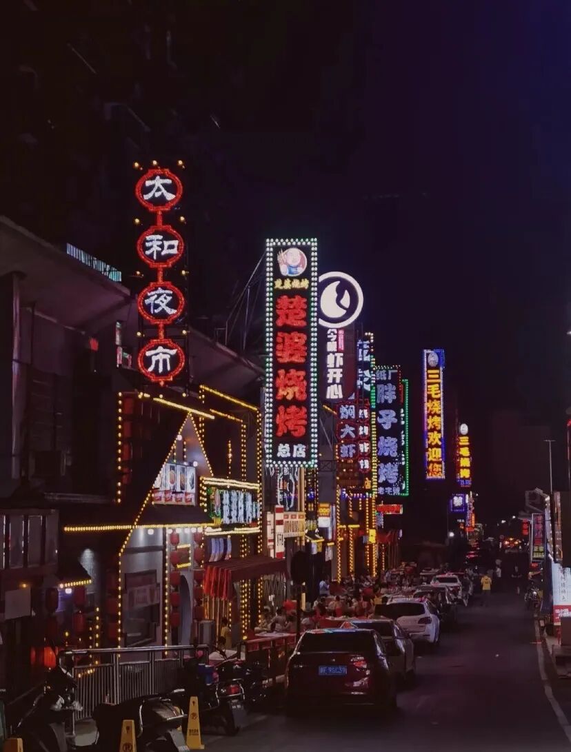一句“先天下之忧而忧,后天下之乐而乐”让大家认识了洞庭湖畔的岳阳楼。岳阳楼下,以八百里洞庭为底,用忧乐情怀着墨,点点风帆共长天一色,片片落霞揽潇湘四景。千年的历史文化,给了岳阳深厚的底蕴。走在小城里,仿佛都能感受到千百年前文人墨客停驻于此的灵性。踏上古老的石板,抚摸沧桑的青砖,好像可以倾听到过去的故事。古韵与书生气逐渐散去,取而代之的,是赛博朋克的霓虹招牌、漫天的烧烤白烟和空气里都弥漫着的酒香肉香。