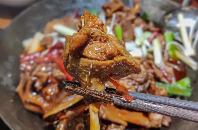 岳阳属于湖区,湿气和寒气略重,所以“姜辣”系列在这里很受欢迎。姜辣蟹、姜辣凤爪、姜辣猪脚,早就成为岳阳菜品里自成一派的创新菜。耙糯的鸡爪,只有掌中的位置略带嚼劲。姜的辛香早已浸透到骨头,每一口咬下去,都能感受到鸡爪混着被生姜的辣、花椒的麻包裹的汤汁,在嘴里融合的奇妙。