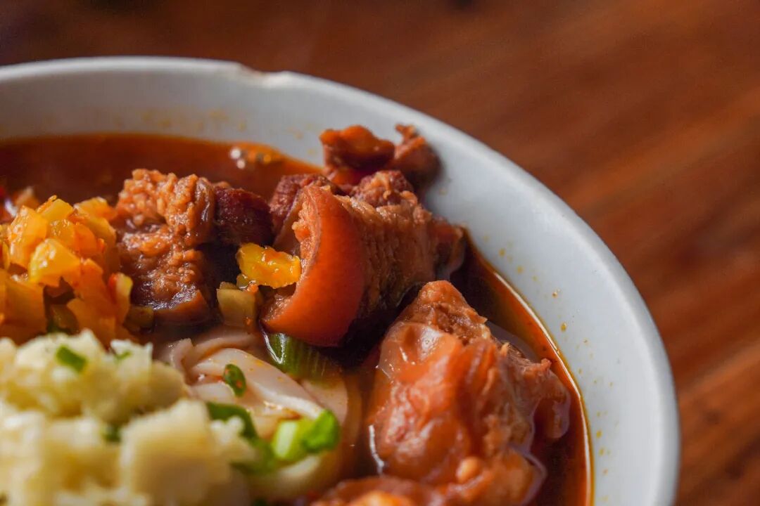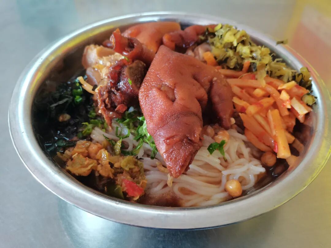 他藏在老城区的街角小巷中,看似老破小的小房间却藏着让本地老饕和外地游客都上头的美味,免费提供的酸笋和芋梗配上Q弹的米粉,入味的猪脚让阿球到现在都记忆犹新。温馨提醒:生意太好老板难免忙不过来,去晚了就只剩下瘦肉,建议大家提前去喔。本地人每天以一顿猪脚粉作为开篇,而这家电厂猪脚粉一定是不少人的晨起落脚点。被评为“十大最佳猪脚粉”就是因为用心二字,选好料,只为呈现在顾客面前的一碗粉。一碗好的猪脚粉,一定要配以好的猪脚才能名流天下,而在这里,老板每天都会细心处理猪脚,入口的猪脚外酥里嫩,咸香鲜糯一应俱全,分量还很足!汤汁味道也足够鲜甜,卤汁入味,一定要配上辣椒酱和酸菜,更够劲儿