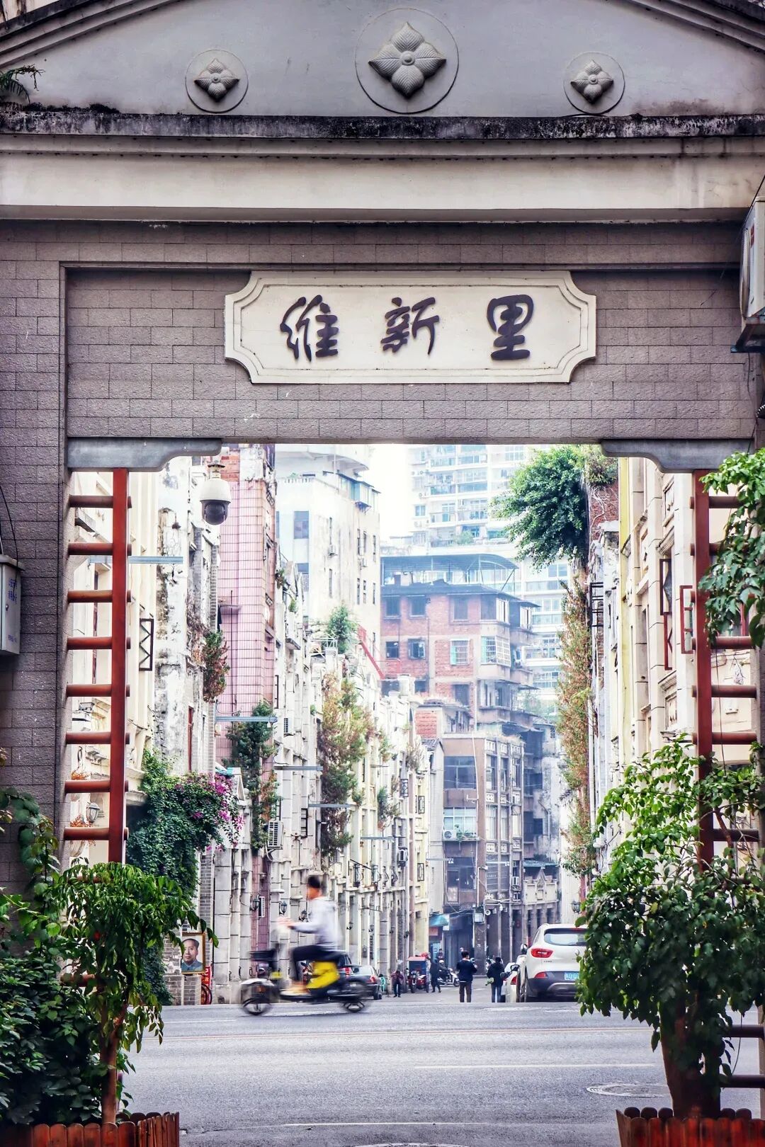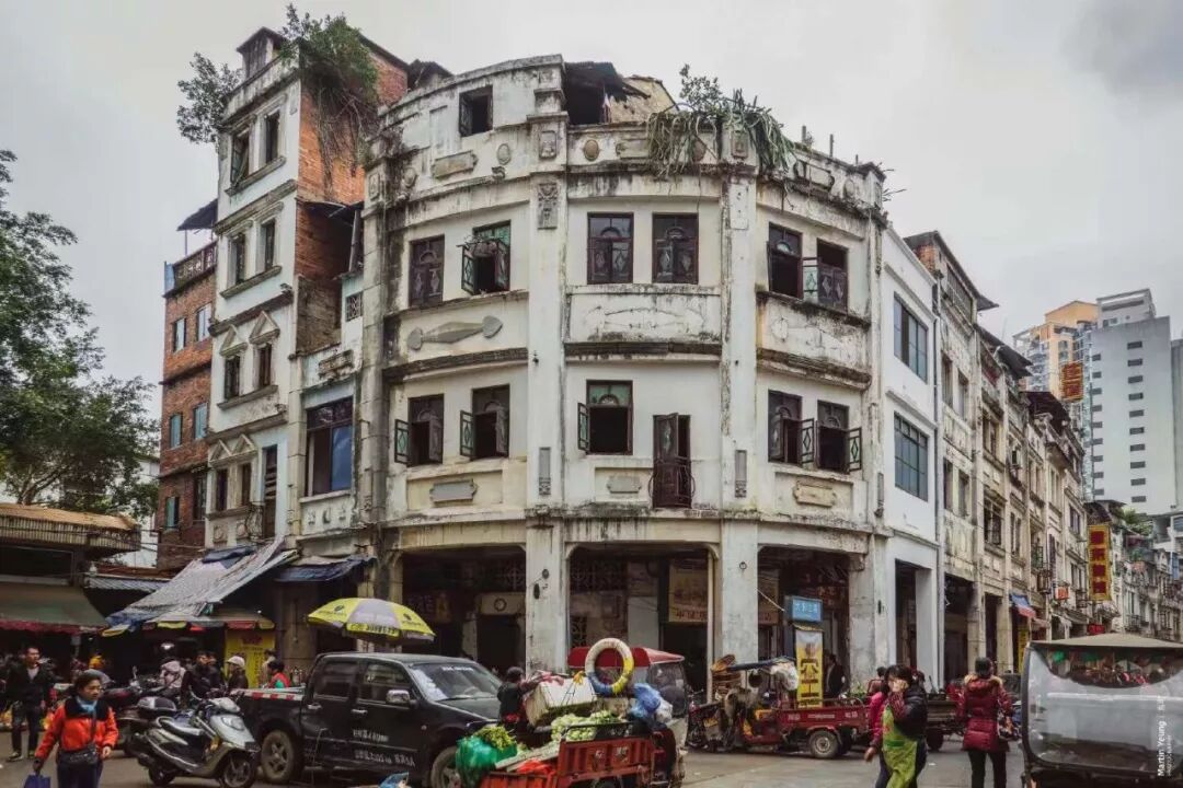 走进骑楼群,仿若与时光来了一次怦然心动的邂逅,异域的建筑风格,中式的装饰雕花,